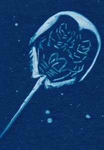 Limulus. A Present From The Past 27. March 2023 Blue Print on Cotton 21(B) x 27,8 (H) cm ©Daniela Finke